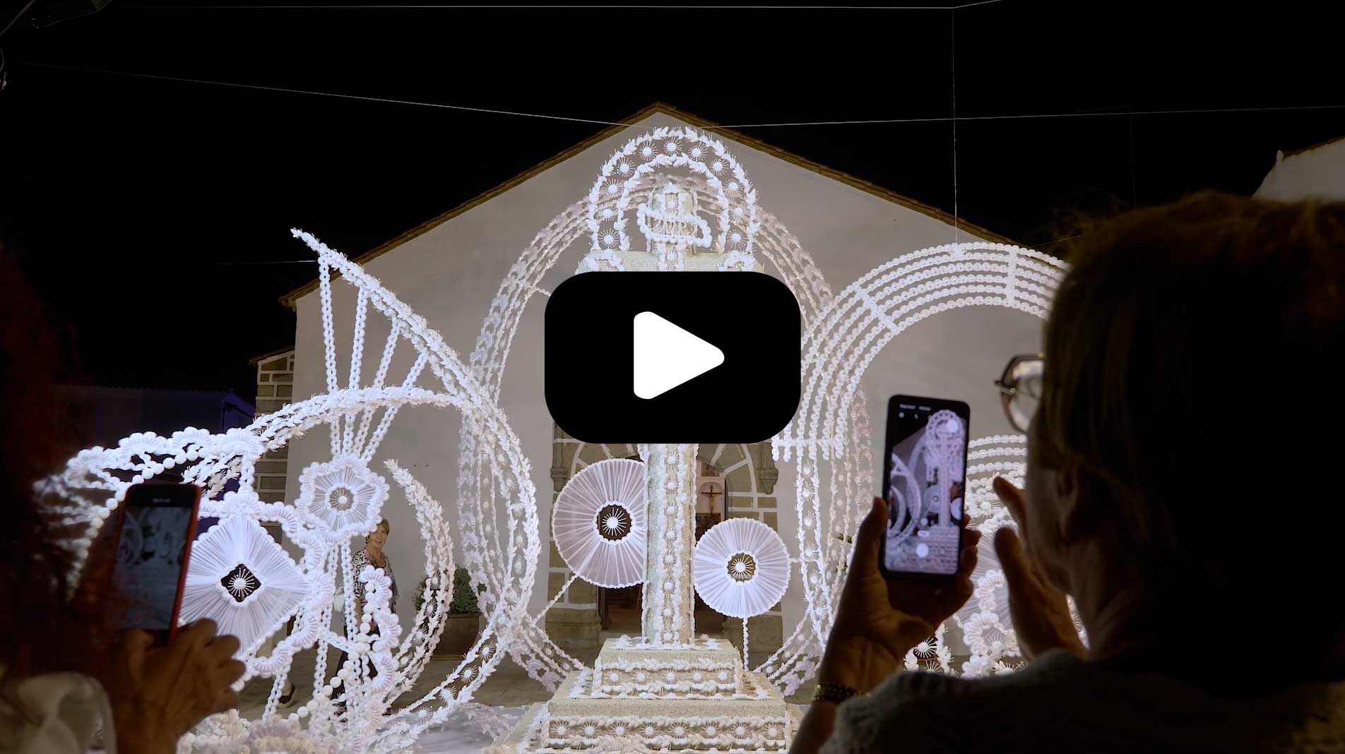 Tradicionalmente son las mujeres (las cruceras) quienes, durante meses previos, confeccionan flores de papel de seda, bordados, encajes y otros adornos para “vestir” las cruces. Hay dos modalidades: cruces públicas (instaladas en plazas y esquinas) y cruces de interior (montadas dentro de patios o salas de casas particulares). La noche del sábado de la Velá es mágica: al caer la noche se abren al público todas las cruces participantes en el concurso municipal. Los vecinos y visitantes recorren el pueblo de cruz en cruz, admirando cada creación bajo la iluminación especial que realza su belleza. Se escuchan por las esquinas los tradicionales “mayos”, cantos populares que grupos locales entonan para cada cruz, y se baila la jota noriega espontáneamente. En torno a la medianoche hay reparto de chocolate caliente con dulces típicos para todos, y ya de madrugada (sobre las 5 de la mañana) se anuncia el fallo del jurado, otorgando premios a las mejores cruces.